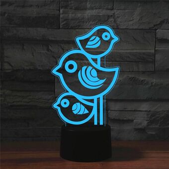 Three Birds Shape 3D Colorful LED Vision Light Table Lamp, USB Touch Version