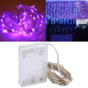 10m IP65 Waterproof Silver Wire String Light, 100 LEDs SMD 06033 x AA Batteries Box Fairy Lamp Decorative Light, DC 5V(Purple Light)