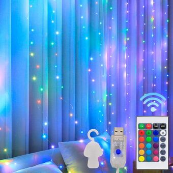 3m x 1m 100 LED RGB 16 Χρώμα-αλλαγή χάλκινου σύρματος Curtain String Lights