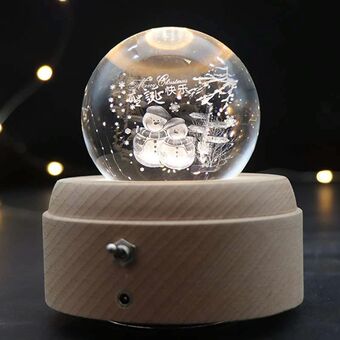 Κορίτσι κομοδίνο λαμπτήρας κρυστάλλινη μπάλα ξύλινη βάση μουσικό κουτί φόρτισης λάμψη περιστρεφόμενο φως νύχτας, τυχαία μουσική (Καλά Χριστούγεννα)