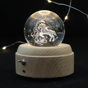 Κορίτσι κομοδίνο λάμπα κρυστάλλινη μπάλα ξύλινη βάση μουσικό κουτί φόρτισης λάμψη περιστρεφόμενο φως νύχτας, τυχαία μουσική (μονόκερος)