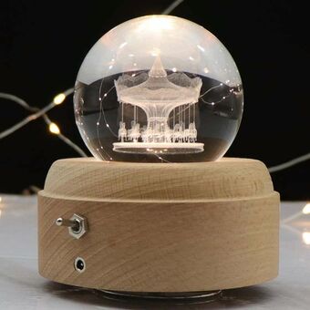Κορίτσι κομοδίνο λάμπα κρυστάλλινη μπάλα ξύλινη βάση μουσικό κουτί φόρτισης λάμψη περιστρεφόμενο φως νύχτας, τυχαία μουσική (πικραλίδα)