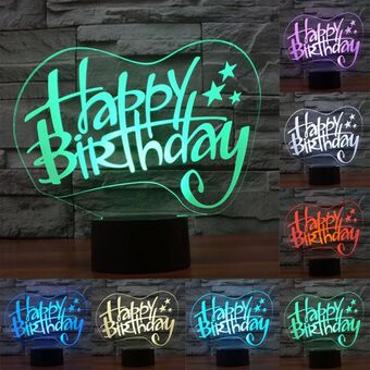 Happy Birthday Style 3D Touch Switch Control LED Light , 7 χρώματα αποχρωματισμού Δημιουργική οπτική στερεοφωνική λάμπα φωτιστικό γραφείου νυχτερινό φως