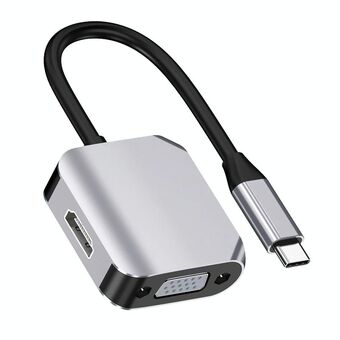 HW-6002 2 In 1 Type-C / USB-C to HDMI + VGA Adapter Converter(Grey)