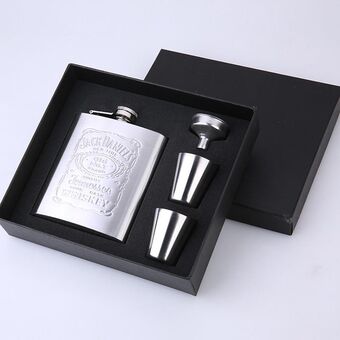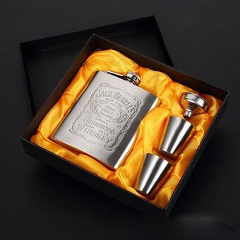 Portable Stainless Steel Hip Flask Set With Wine Glass Funnel, Style: 8OZ Old Jack Patch Core