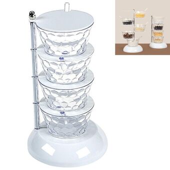 Κουζινικά σκεύη Αποθήκευση δεξαμενής 4 στρώσεων Περιστρεφόμενο κάθετο κουτί καρυκευμάτων με κουτάλι (λευκό)