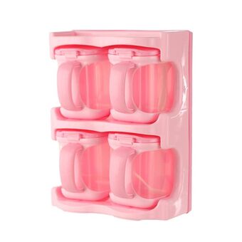 Πλαστικό κουτί καρυκευμάτων πολλαπλών χρήσεων συνδυασμός καρυκευμάτων Rack προμήθειες κουζίνας, στυλ: τέσσερα πλέγματα (ροζ)