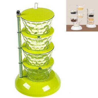 Κουζινικά σκεύη Αποθήκευση δεξαμενής 4 στρώσεων Περιστρεφόμενο κάθετο κουτί καρυκευμάτων που έχει οριστεί με κουτάλι (πράσινο)