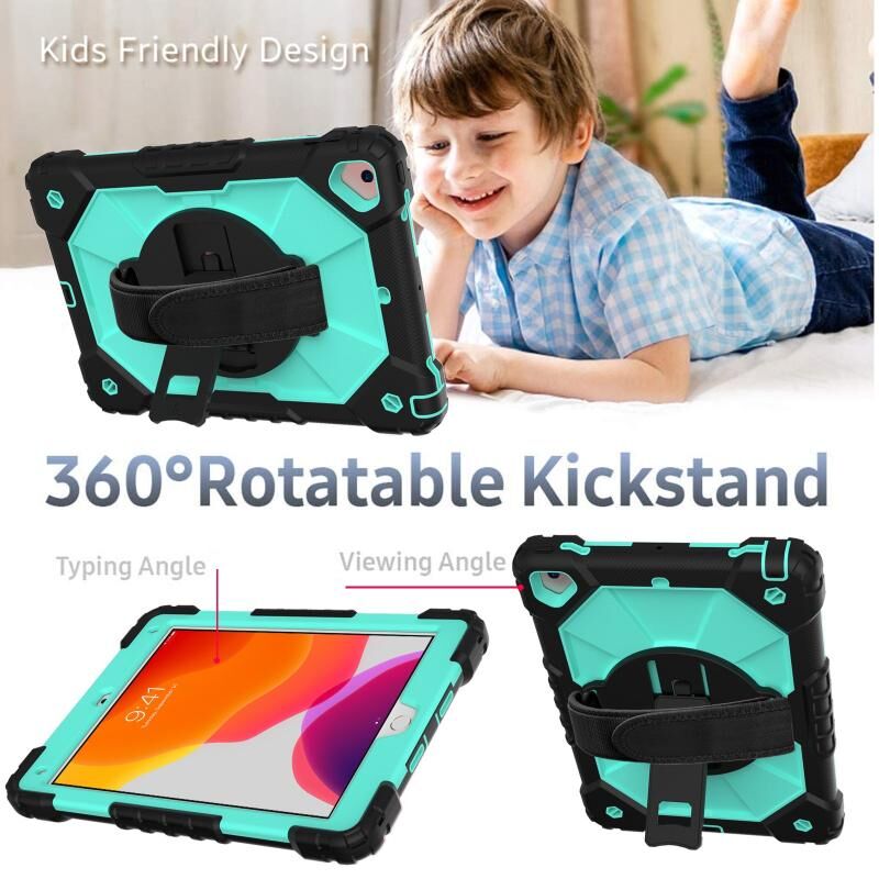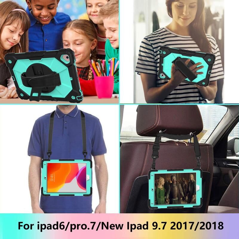 Θήκη Προστασίας για iPad 9.7 (2018) & (2017) / Air 2 / Air σε πολύχρωμο κόκκινο, με Αντίθεση Χρωμάτων, Αντικραδασμική, από Σιλικόνη + PC, με Λαβή & Λουρί Ώμου.