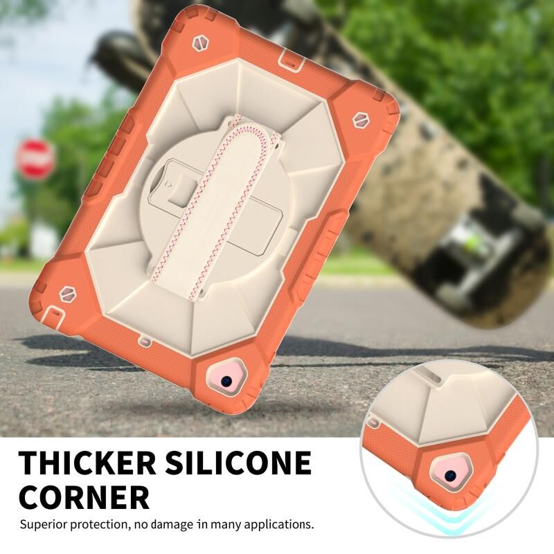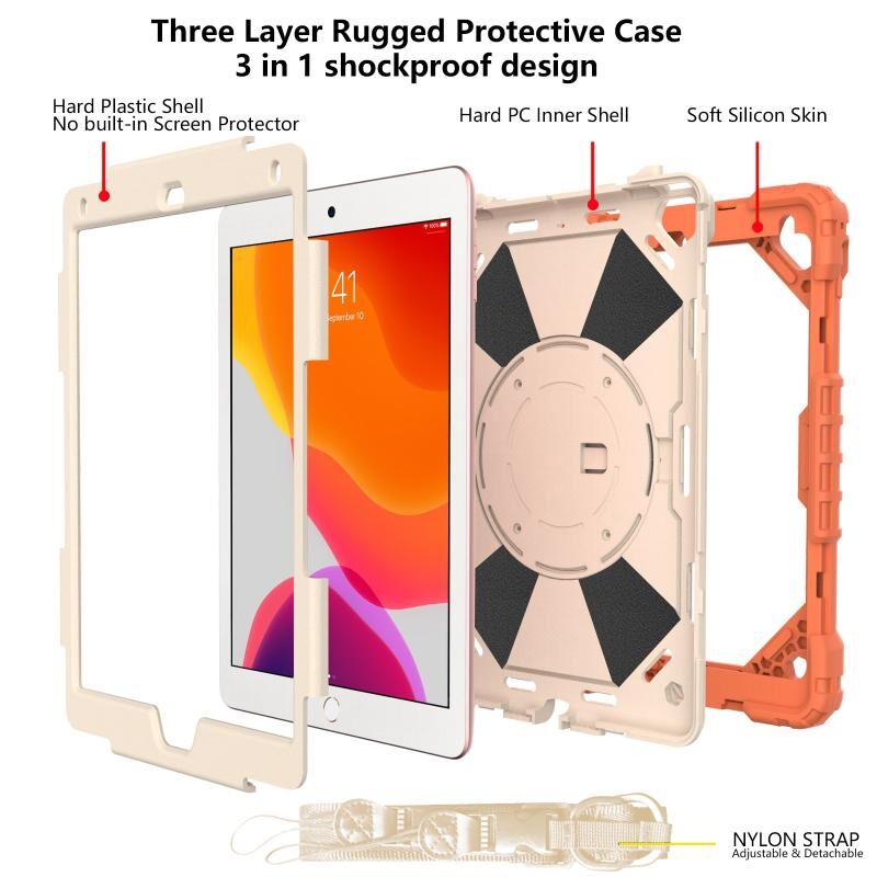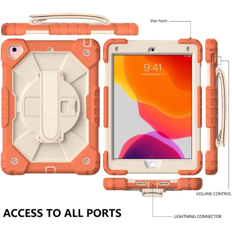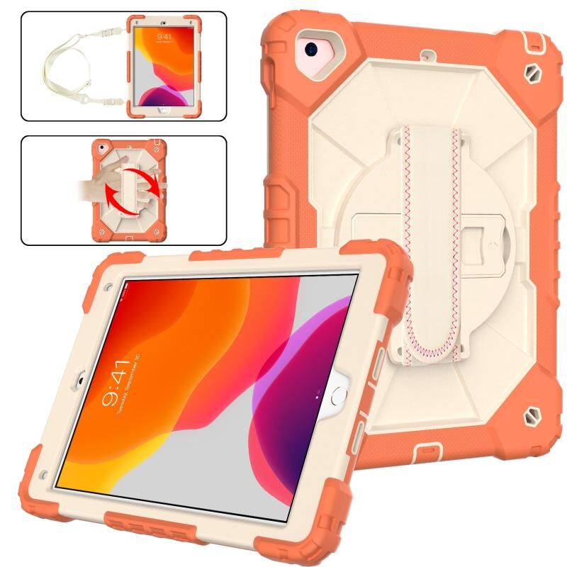 Contrast Color Robot Shockproof Silicon + PC Protective Case with Holder & Shoulder Strap For iPad 9.7 (2018) & (2017) / Air 2 / Air(Coral Orange+Beige)