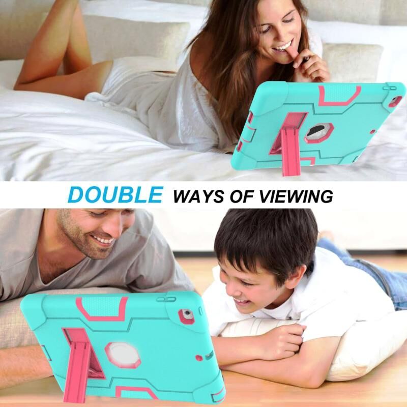 Θήκη Προστασίας για iPad 9.7 (2017) / (2018) με Αντικραδασμική Σιλικόνη + PC σε Αντίθετα Χρώματα και Στήριξη (Μέντα Πράσινο + Ροζ Κόκκινο)