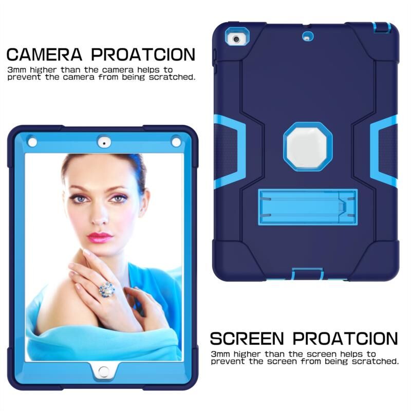 Θήκη Προστασίας για iPad 9.7 (2017) / (2018) με Αντικραδασμική Σιλικόνη + PC σε Αντίθετα Χρώματα και Στήριξη (Μέντα Πράσινο + Ροζ Κόκκινο)