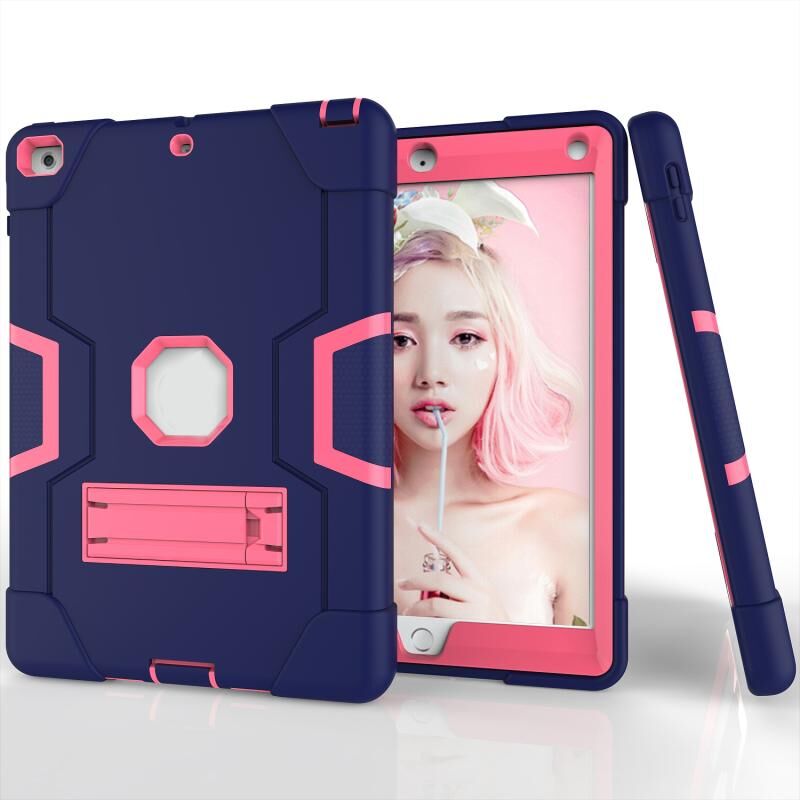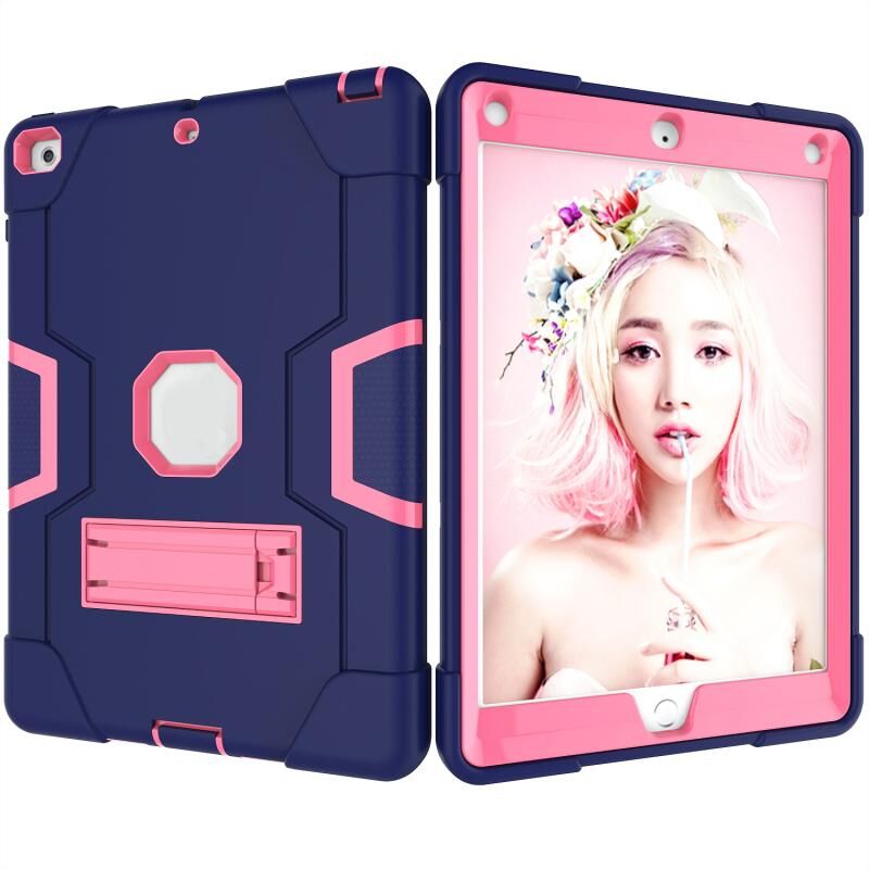 Θήκη Προστασίας για iPad 9.7 (2017) / (2018) με Αντικραδασμική Σιλικόνη + PC σε Αντίθετα Χρώματα και Στήριξη (Μέντα Πράσινο + Ροζ Κόκκινο)