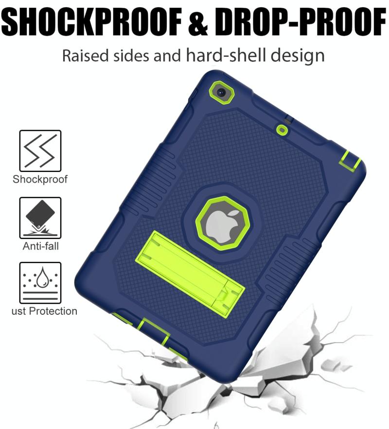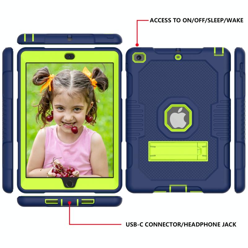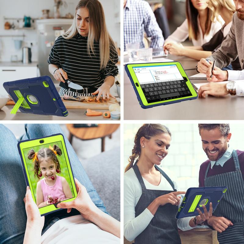 Contrast Color Robot Shockproof Silicone + PC Protective Case with Holder For iPad 9.7 (2017/2018)(Navy Blue Yellow Green)