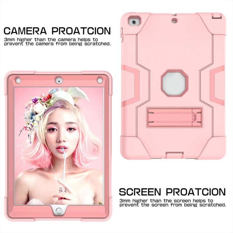 Contrast Color Robot Shockproof Silicone + PC Protective Case with Holder For iPad 9.7 (2017) / (2018)(Rose Gold)
