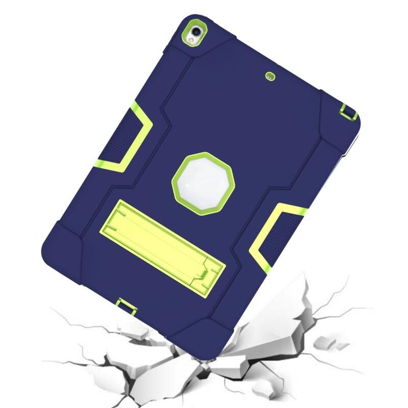 Contrast Color Robot Shockproof Silicone + PC Protective Case with Holder For iPad Pro 10.5 inch (2017) / Air 10.5 (2019)(Navy Blue + Yellow Green)