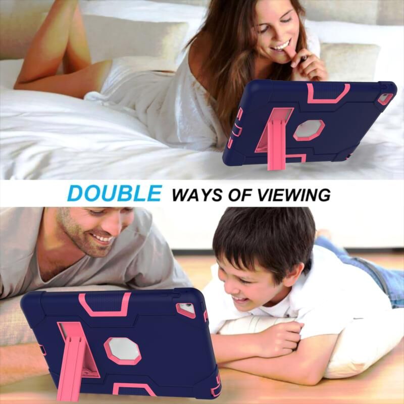 Contrast Color Robot Silicone + PC Tablet Case For iPad 6 / iPad Pro 9.7 2016(Navy Blue + Rose Red)