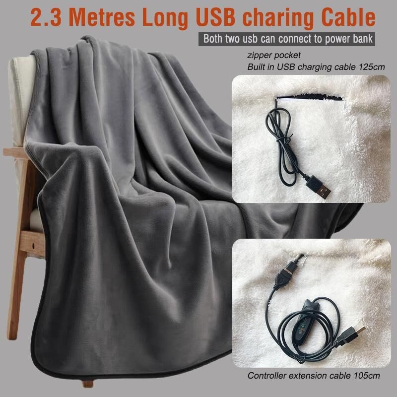 Packing list: usb electric shawl blanket x 1, controller extension cable x 1, English manual x 1, frosted bag x 1