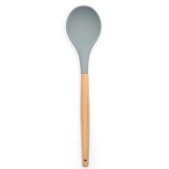 Silicone Wood Handle Round Cooking Spoon Heat-resistant Kitchen Tools