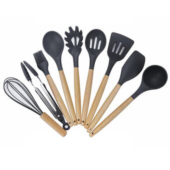 kn020 9 σε 1 έκδοση B Ξύλινη λαβή σιλικόνης με αντικολλητική σπάτουλα Κουτάλι σετ εργαλείων κουζίνας