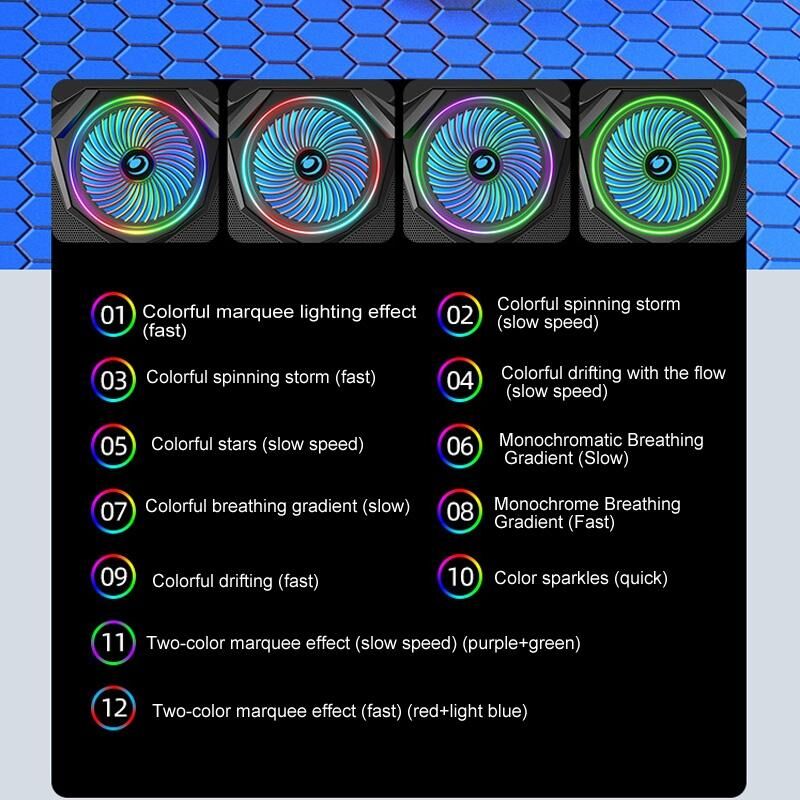 4. Lighting: 12 kinds of RGB lights (lights can be adjusted) / 7 kinds of RGB lights (lights are fixed) / no lights