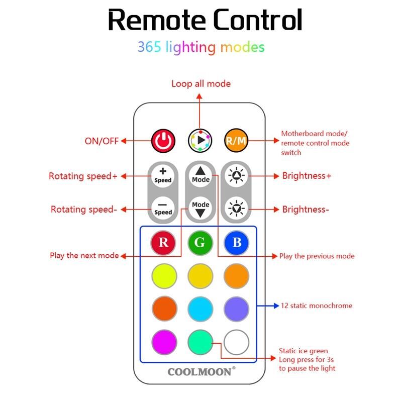 2. Ελεγκτής 3-σε-1: εξοπλισμένος με τέσσερις βασικές λειτουργίες: έξυπνο έλεγχο θερμοκρασίας PWM, συγχρονισμό 5V ARGB Shenguang και ασύρματο τηλεχειριστήριο