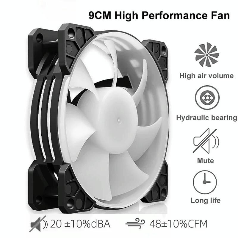 4. 9025 fan, 7 large fan blades to provide large air volume, hydraulic bearing, quiet and durable
