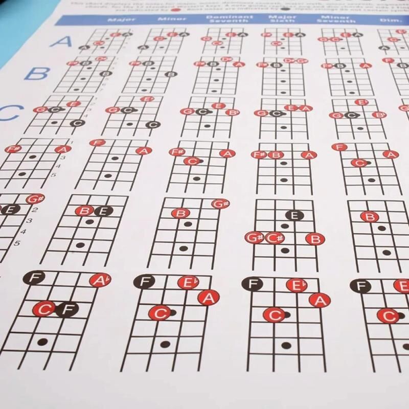 3. Διάγραμμα συγχορδιών για μπάσο 4 χορδών (για ακουστικά και ηλεκτρονικά μοντέλα) Αυτό το πολυεπίπεδο διάγραμμα δείχνει τις κοινές νότες που αποτελούν ένα μπάσο 4 χορδών E, A, D και G