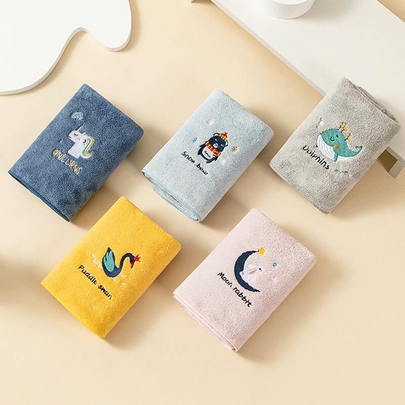 Πετσέτα από κοραλλόφλις με παιδικά κεντήματα, παχιά, μαλακή και απορροφητική για οικιακή χρήση (Γκρι)