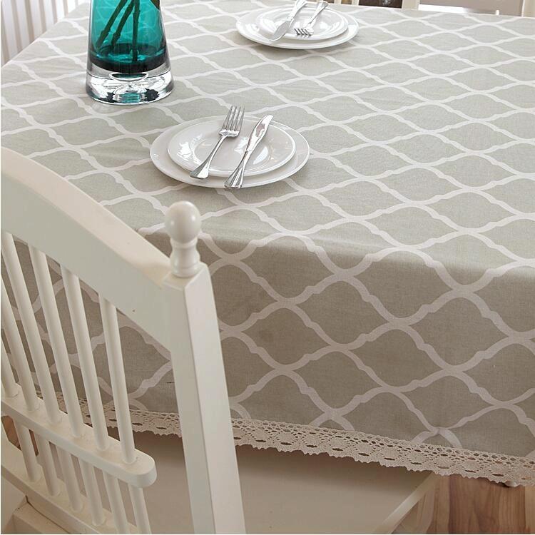 Cotton and Geometric Rhombus Gray LaceTablecloth, Size:140x160cm(With Lace)