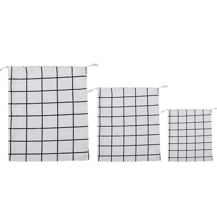 Cotton Linen Drawstring Pocket Sundries Storage Bag, Specification: Small+Medium+Large(White Lattice)