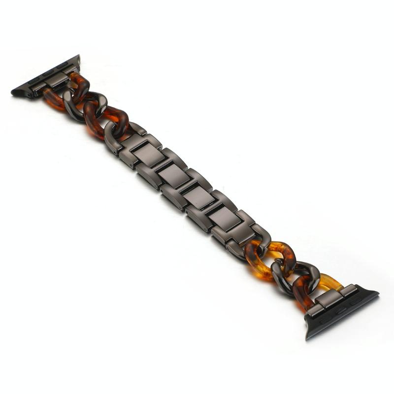 Cowboy Chain + Resin Metal Watch Band For Apple Watch Ultra 49mm&Watch Ultra 2 49mm / Series 9&8&7 45mm / SE 3&SE 2&6&SE&5&4 44mm / 3&2&1 42mm(Black+Tortoiseshell)