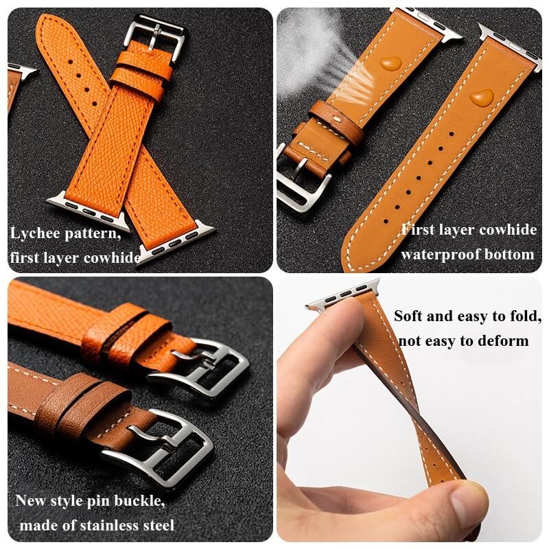 Λουρί ρολογιού από δέρμα αγελάδας για Apple Watch Series 6&SE& 5&4 40mm / 3 & 2 & 1 38mm (Πορτοκαλί)