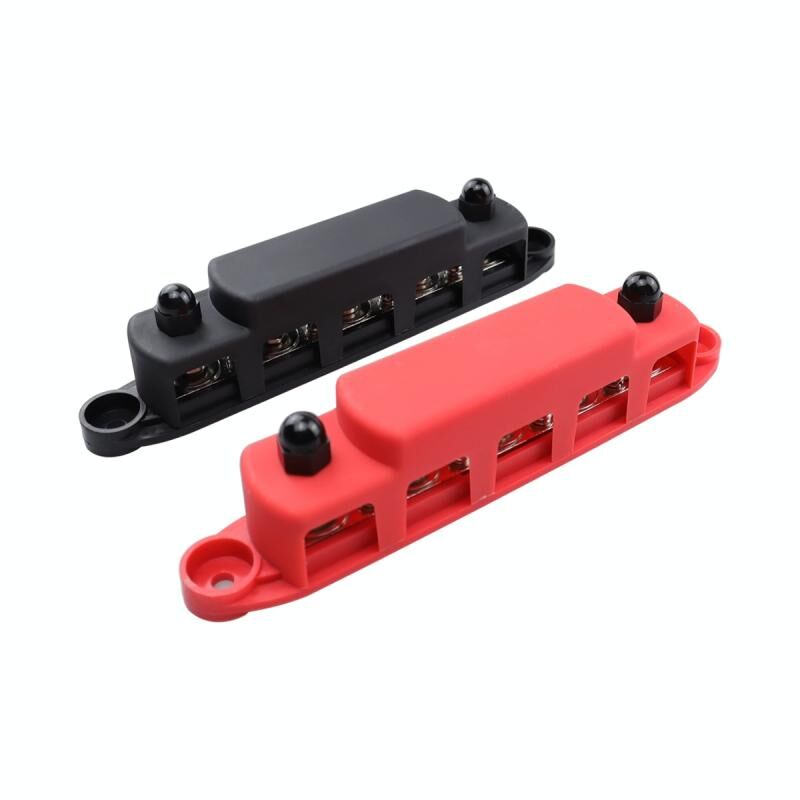 CP-4123 1 Pair RV Yacht M8 Single Row 5-way Power Distribution Block Busbar with Cover(Black + Red)