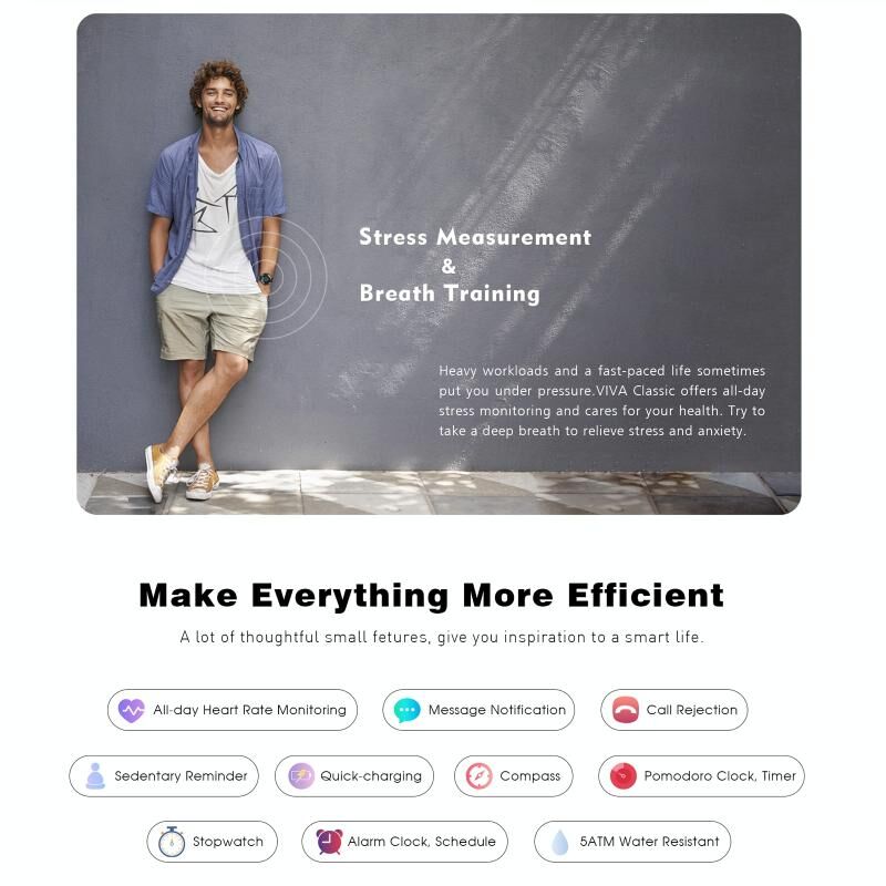 8. Λειτουργία υγείας: παρακολούθηση καρδιακής υγείας (έλεγχος για αρρυθμία), ακριβής ανίχνευση οξυγόνου αίματος, επιστημονικός ύπνος (REM), εκπαίδευση αναπνοής, αξιολόγηση στρες, 24ωρη παρακολούθηση καρδιακού ρυθμού