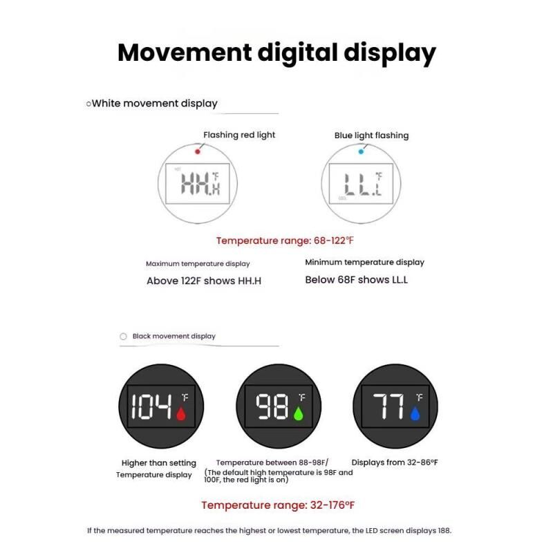 8. Black movement temperature range: 32-176 degrees Fahrenheit