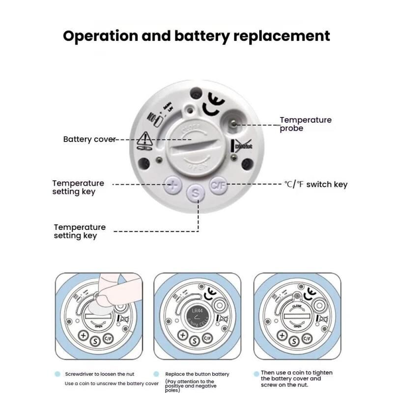 12. Usage: First turn on the water thermometer movement, put the water thermometer in the water for 1-2 minutes before bathing, and take it out. It will be more accurate after the water temperature stabilizes. Before the baby takes a bath, the mother should confirm the water temperature with her hand.