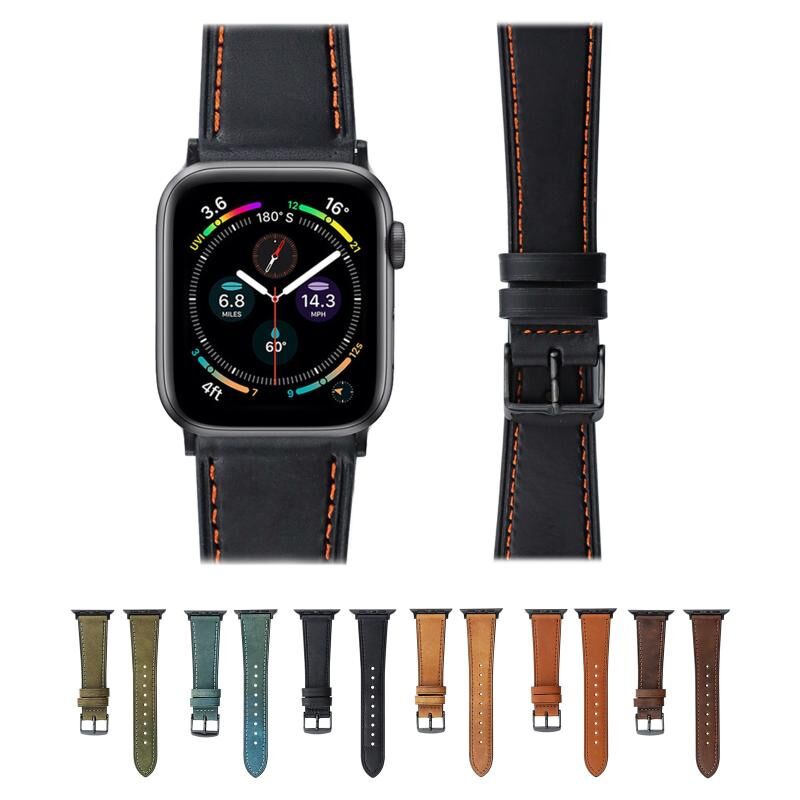 Λουράκι ρολογιού από γνήσιο δέρμα τρελού αλόγου για Apple Watch Series 9&8&7 41mm / SE 3&SE 2&6&SE&5&4 40mm / 3&2&1 38mm (Ελαιοπράσινο)