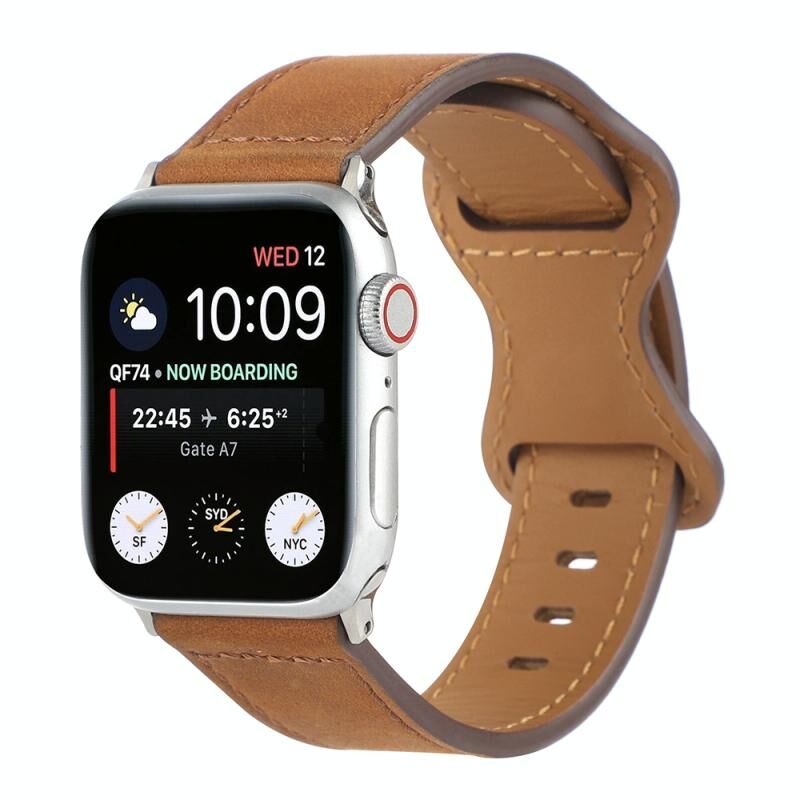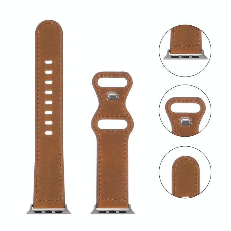 Λουράκι ρολογιού από δέρμα τρελού αλόγου με αγκράφα πεταλούδας για Apple Watch Series 9&8&7 41mm / SE 3&SE 2&6&SE&5&4 40mm / 3&2&1 38mm (Καφέ)