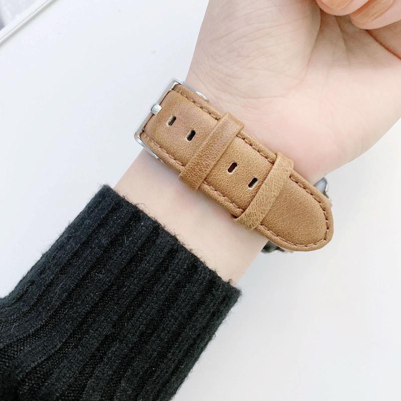 Λουράκι ρολογιού από δέρμα Crazy Horse με υφή + επίπεδη υφή για Apple Watch Series 9&8&7 41mm / SE 3&SE 2&6&SE&5&4 40mm / 3&2&1 38mm (Ανοιχτό καφέ)