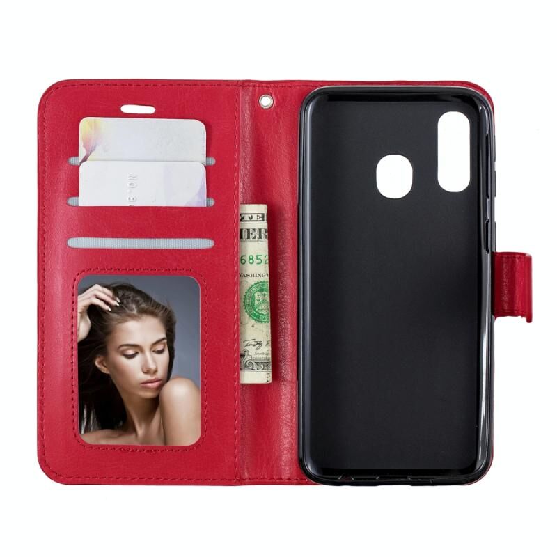 Crazy Horse Υφή Οριζόντια Flip δερμάτινη θήκη με θήκη & υποδοχές για κάρτες & πορτοφόλι & κορνίζα για Galaxy A20E (κόκκινο)