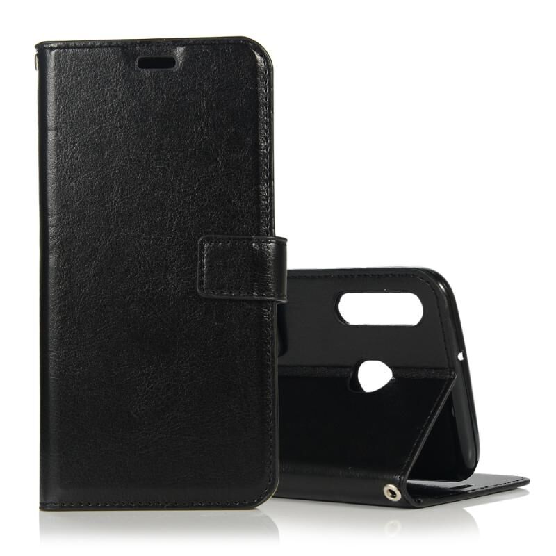 Crazy Horse Texture Horizontal Flip Leather Case with Holder & Card Slots & Wallet & Photo Frame for Galaxy A40(Black)