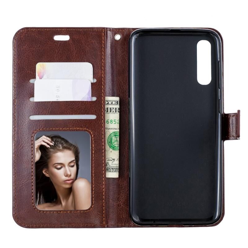Crazy Horse Υφή Οριζόντια Flip δερμάτινη θήκη με θήκη & υποδοχές για κάρτες & πορτοφόλι & κορνίζα για Galaxy A50(Magenta)