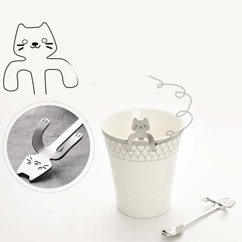 4. Εξαιρετικός και πρακτικός σχεδιασμός, χαριτωμένη λαβή σε σχήμα γάτας, μπορεί να κρεμάσει το κουτάλι στο φλιτζάνι.