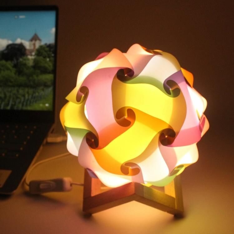 Δημιουργική κρεβατοκάμαρα Κρεβατοκάμαρα Νυχτερινό φως USB Στρογγυλό ρομαντικό λαμπτήρα διακόσμησης δωματίου με ξύλινη βάση, στυλ: (Πολύχρωμο)