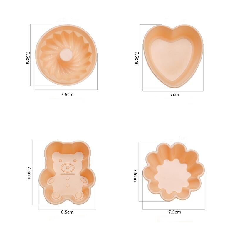 3. Διαστάσεις: καρδιά: 7x7,5 εκ., βάθος 3 εκ.· αρκούδα: 6,5x7,5 εκ., βάθος 3 εκ.· στρογγυλό: διάμετρος 7,5 εκ., βάθος 3 εκ.· λουλούδι: διάμετρος 7,5 εκ., βάθος 3 εκ.
