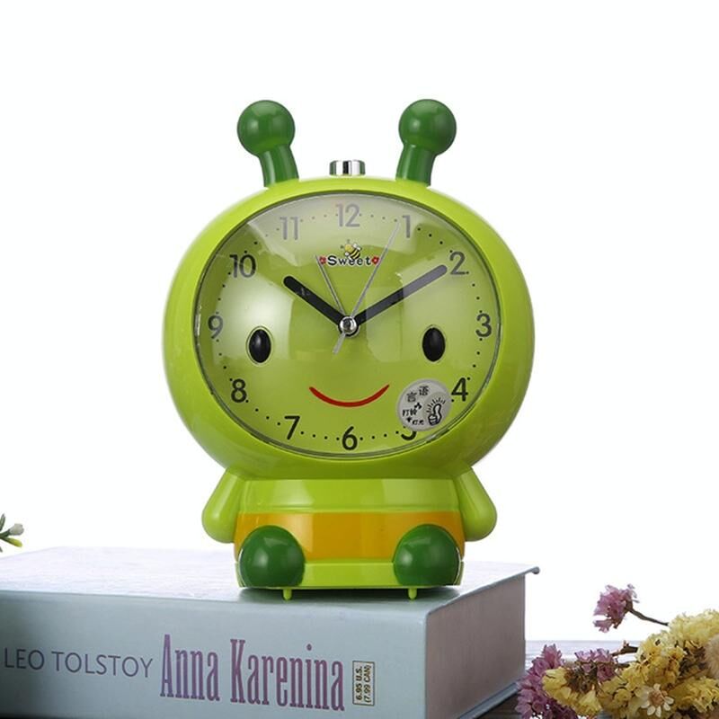 Creative Home Day Cartoon Flower Bee Talking Student Alarm Clock(Green)