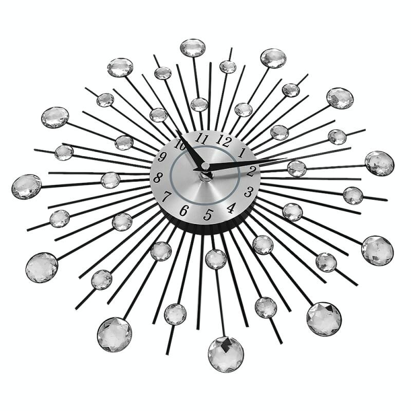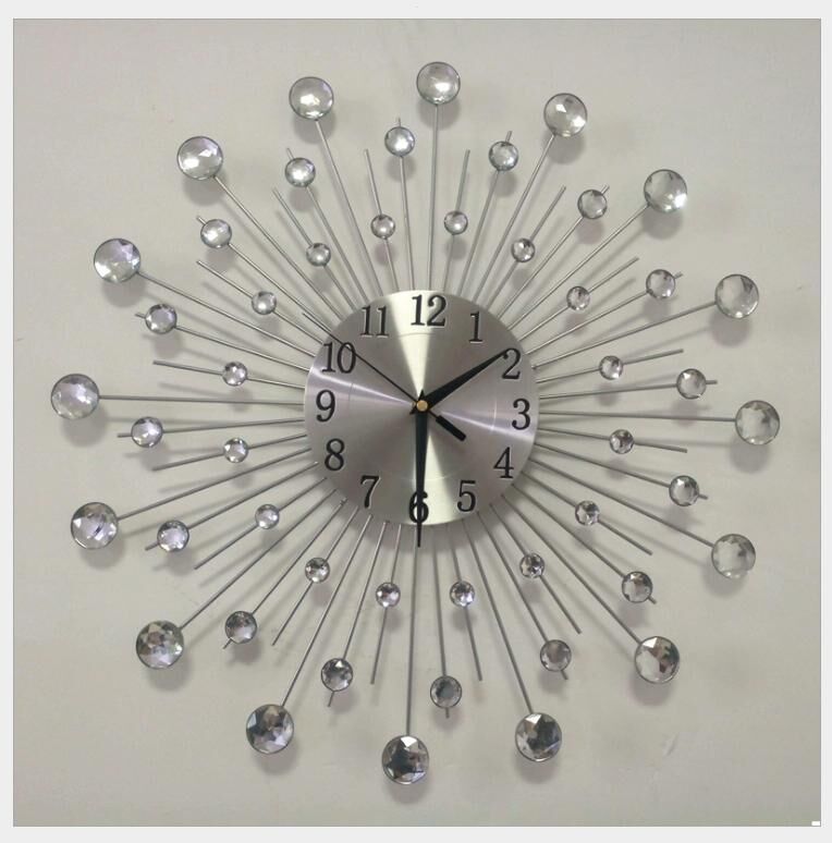This fashionable crystal sunburst wall clock looks luxury and noble, its full of art atmosphere. It will take you to experience a happy life.