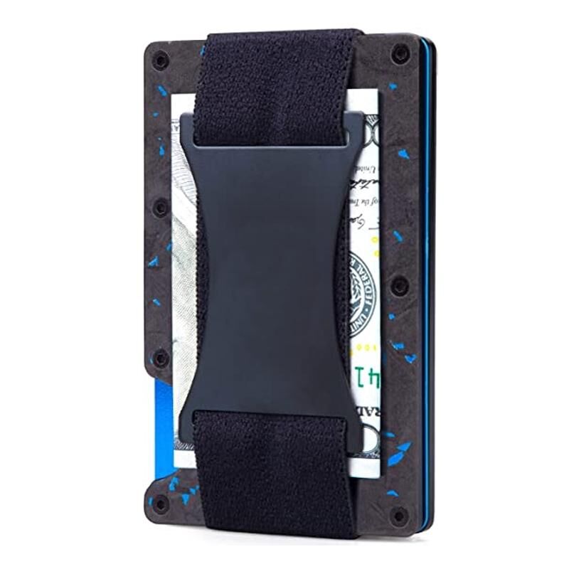 Πιστωτικές κάρτες κάτοχος πορτοφόλια RFID Blocking Slim Metal Card Clip, Χρώμα: Μπλε σφυρηλάτηση άνθρακα