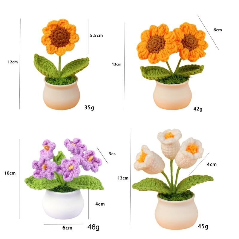 7. Size: sunflower about 12 x 5.5cm, 2-head sunflower about 13 x 6cm, forget-me-not about 10 x 6cm, lily of the valley about 13 x 4cm